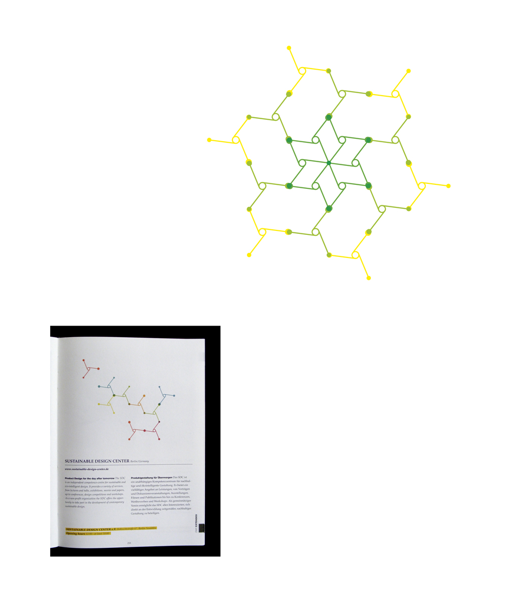 Die Wortmarke ist aus eigens dafür gestalteten Buchstaben gesetzt, aus der Bildmarke entwickelt sich ein gesamtes Gestaltungsprogramm: ein Kommunikationsnetzwerk. Eine ›opensource‹ Schrift wurde weiterentwickelt und als Zentrumsschrift ausgebaut.