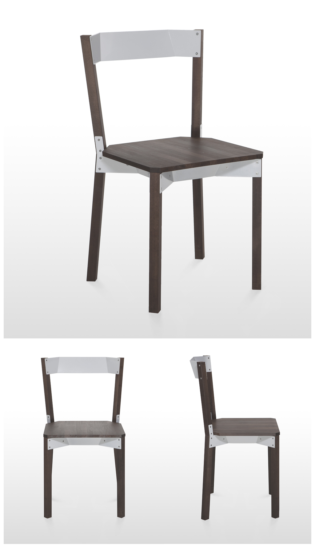 The Prototypes consist of thermical processed wood, enmal lacquert metal sheets and bolds with complementary nuts. The wood has been treaded for better weather-resistance resulting in a local competitor to tropical woods. Its colouring is pervasive and is possible in a variantion of shades. The metal sheet structure joins squared bars and surfaces. The range of the colour coating is variable.