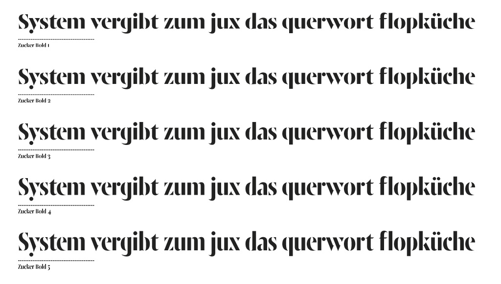 Zucker, qui signifie sucre en allemand, est un point typographique extrême en tant que caractère. C’est un artefact qui empreint au classicisme (le siècle des Lumières) avec de magnifiques exemples de caractères tels que Bodoni, Walbaum et Didot. La finesse de la gravure sur cuivre a désormais laissé place à la précision digitale. Cependant, avec la technique de la reproduction, les liaisons entre les caractères sont perdues, donnant l’impression que la technique ne pouvait pas suivre les lettres. De cette technique ne reste plus qu’une expérience visuelle. C’est au lecteur de rétablir les liaisons.