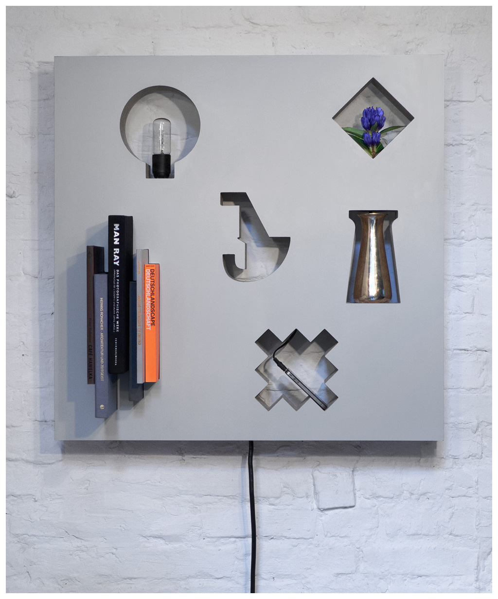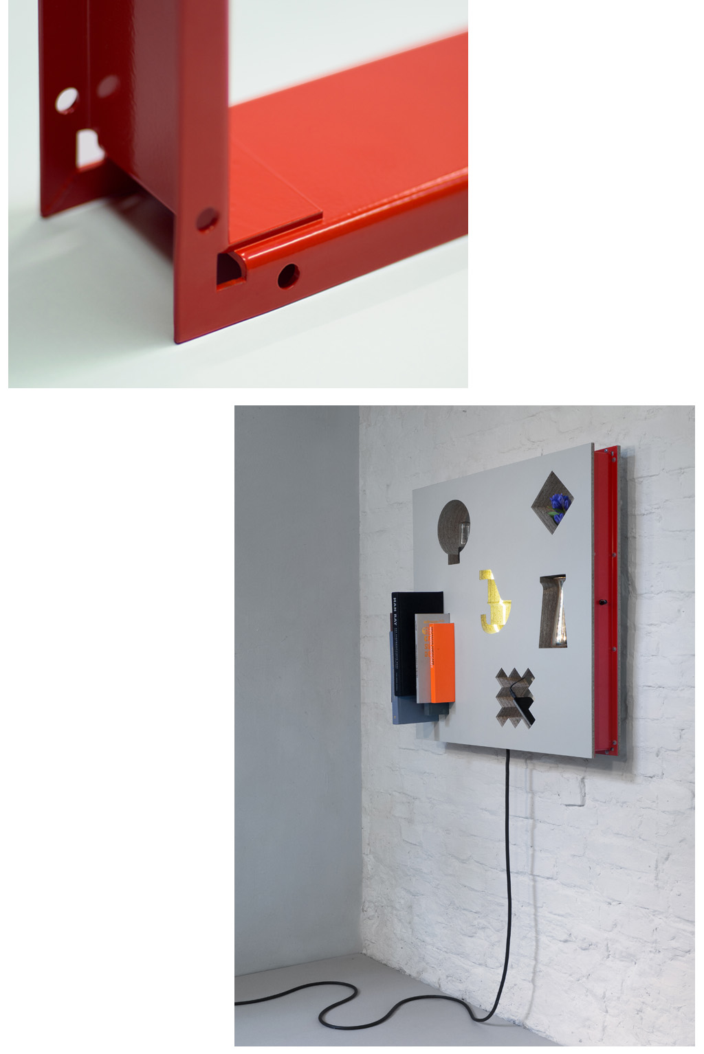 The ›Exponit‹ is a customisable wall panel for premium presentation in showrooms and sales areas or demanding private clients. The frame can include almost every possible cut-out, given by the different objects it should contain. It suits very well in any stage design, because it is modular-transportable and can be set together in x and y direction to cover whole set-ups.