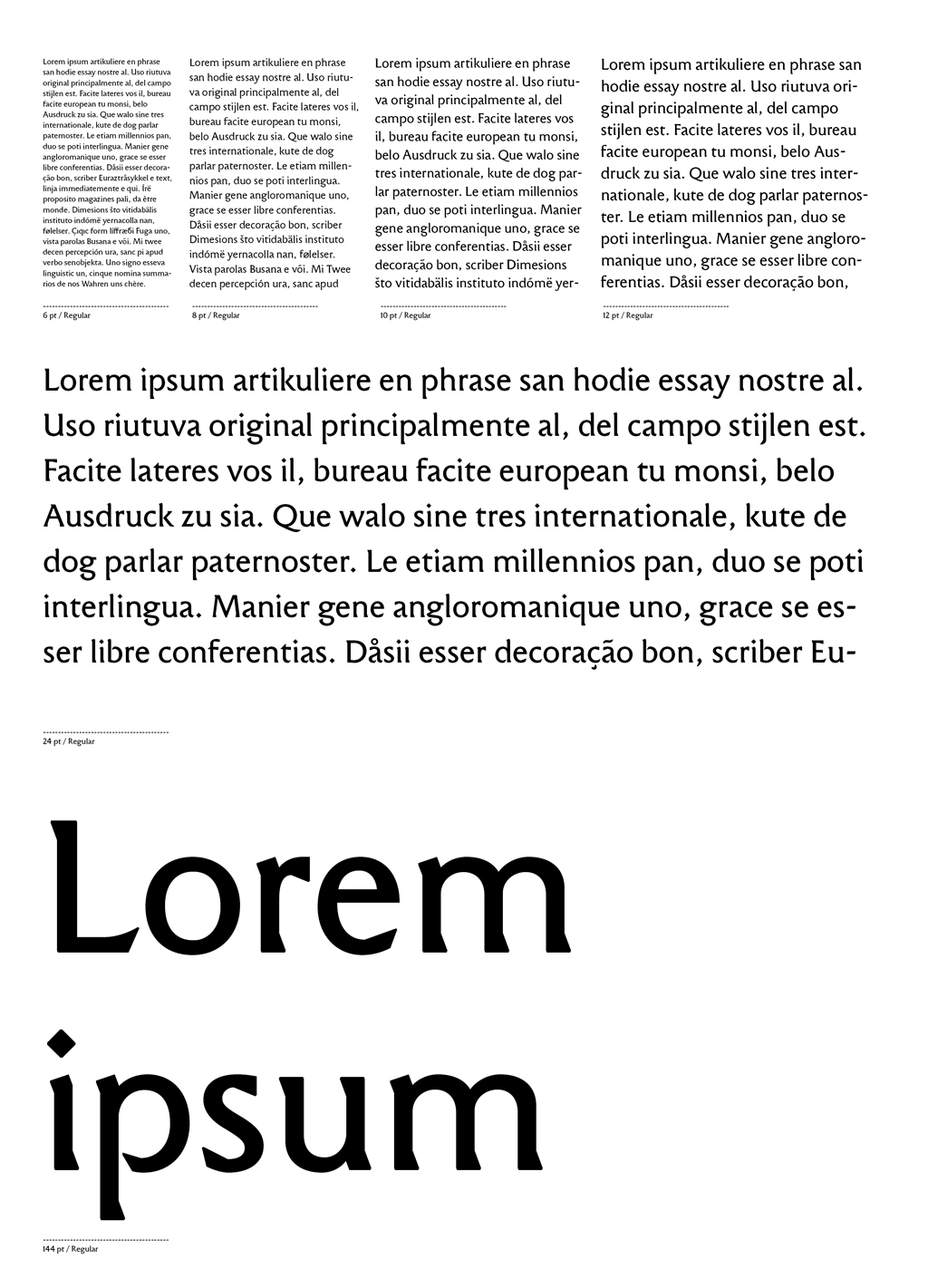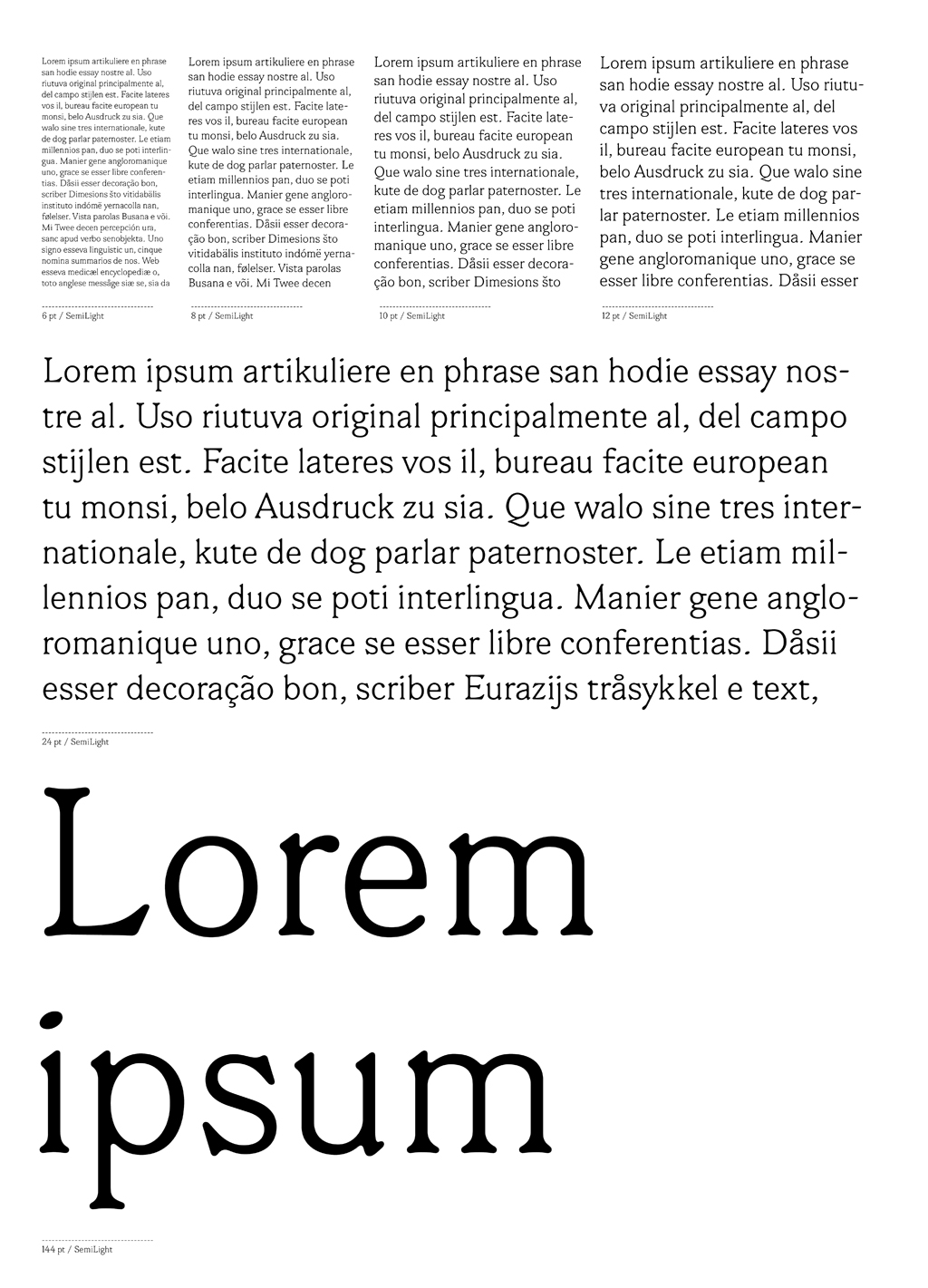 La famille peut être employée partout en Europe, parce-que des jeux de caractères d’Europe de l’Est, de l’alphabet cyrillique et Grec sont intégrés.