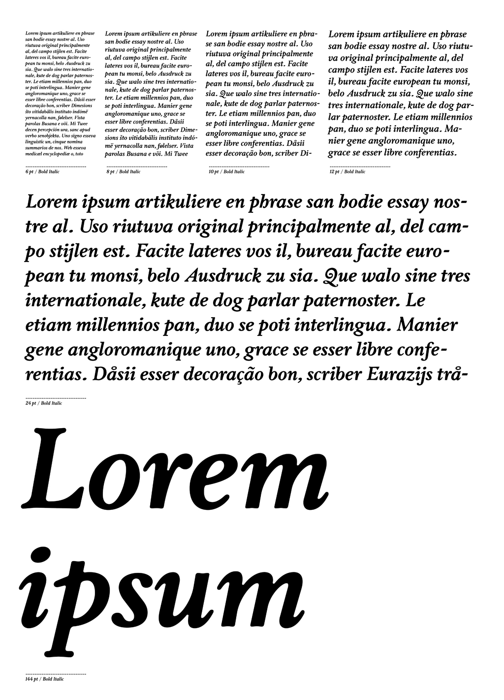›Bodoni Ritalic‹ erblickte 2006 das Licht der Welt. Meine erste Auseinandersetzung mit Serifschriften wurde durch einen Gefallen für einen Kollegen angestoßen. ›Bodoni Ritalic‹ neigt sich nach links und stemmt sich gegen die Schreibrichtung. Ein Novum für eine Bodoni, auch wenn ähnliche, historische Schriftbeispiele aus der Welt der Kartografie vorkommen. Bodonis Schriften sind durch ihre formale Vollendung eine Herausforderung. Im Jahre 2013 war ich als Schriftgestalter soweit fortgeschritten, dass ich eine Bodoni Variante in gleicher Qualität umzusetzen konnte, wie sie die Adaptionen von Heinrich Jost für die Bauersche Schriftgießerei geschnitten, boten. Die Neuüberarbeitung der Schrift wurde durch neue Studien unter anderem des ›Manuale tipografico‹ von Giambattista Bodoni gestützt.