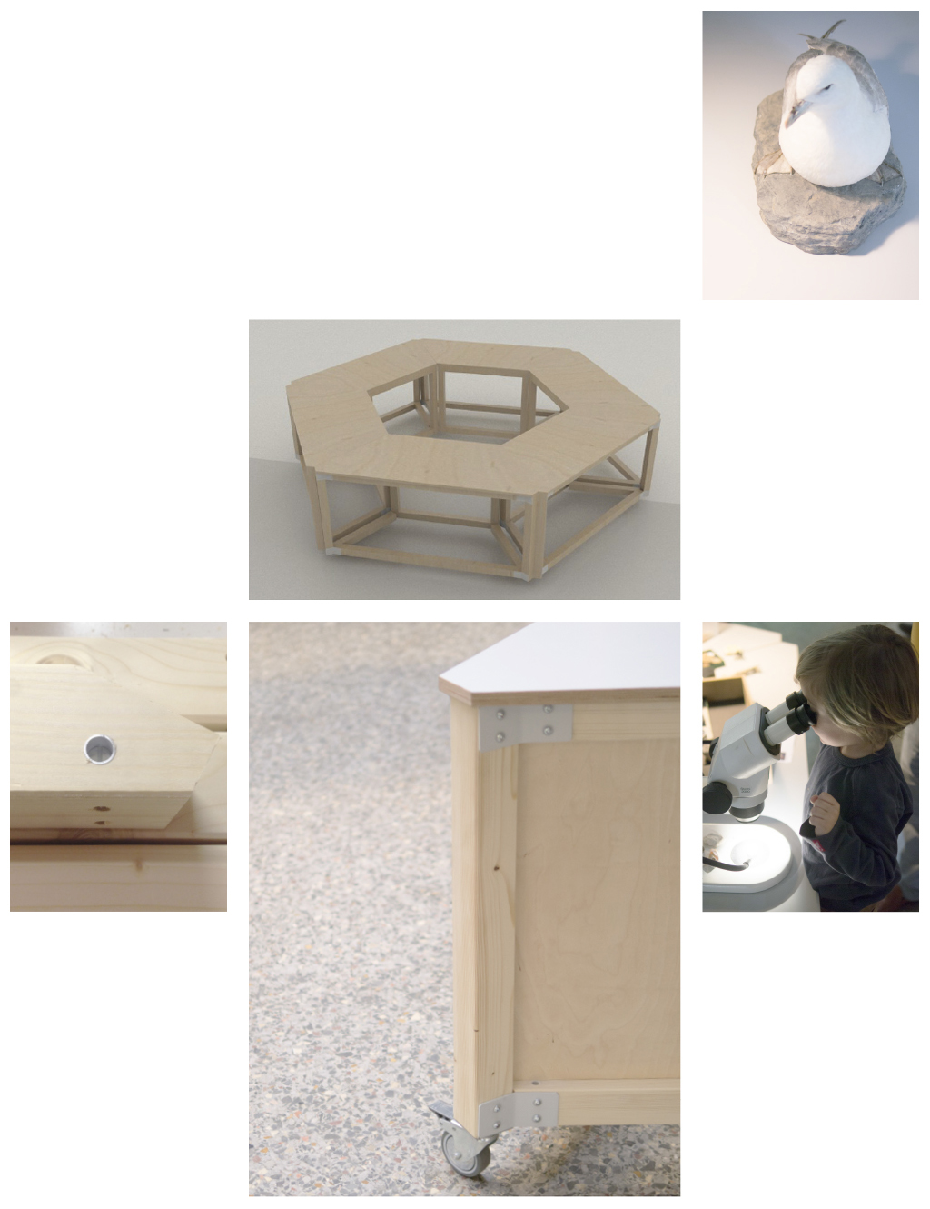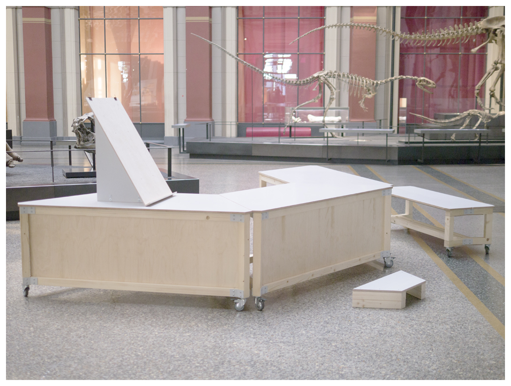 Das Museum für Naturkunde in Berlin sorgt dafür, dass die wissenschaftliche Arbeit, die in den Exponaten der Ausstellung steckt, greifbar für die Besucher wird. Die hierfür gestalteten Ausstellungsmöbel sind genau auf die Anforderungen an Mobilität, Variabilität im Aufbau und einfacher Nutzung abgestimmt und bieten vielfältigen Einsatzmöglichkeiten. Mit einer wesentlichen Verbindung in der Konstruktion konnten die Möbel mit Standardelementen gebaut werden. Bei der Materialwahl und Konstruktionsweise liegt der Fokus auf der nachhaltigen Herstellung und Nutzung. Alle Bestandteile sind demontier- und ersetzbar.