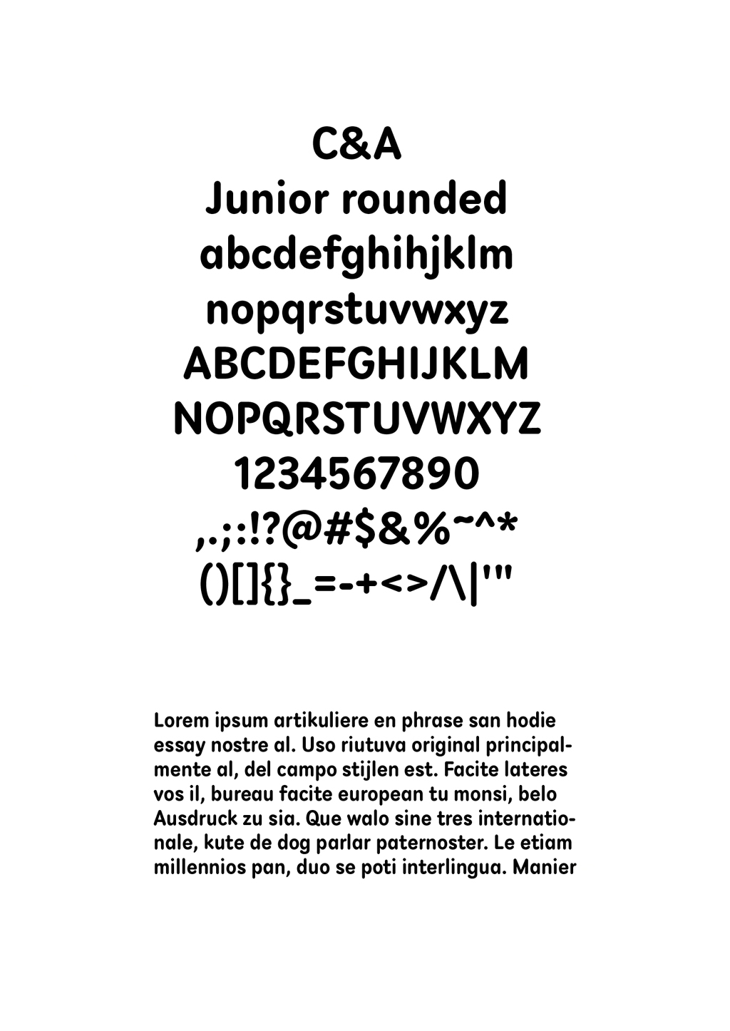 Das Traditionshaus für Bekleidung C&A suchte eine neue Schrift, um seine Kindermarken auszuzeichnen und visuell zusammenzufassen. Das Designteam beauftragte JHA eine einfache, aber eigene Schrift zu gestalten und zu entwickeln. Die Rundungen in den Abschlüssen erzeugen einen freundlichen, jungen und emotionalen Ausdruck, der gut zur Altersgruppe passt und einen eigenen Akzent setzt ohne von der angebotenen Kleidung abzulenken. Die Erkenn- und Lesbarkeit ist für alle Anwendungsfälle hervorragend.